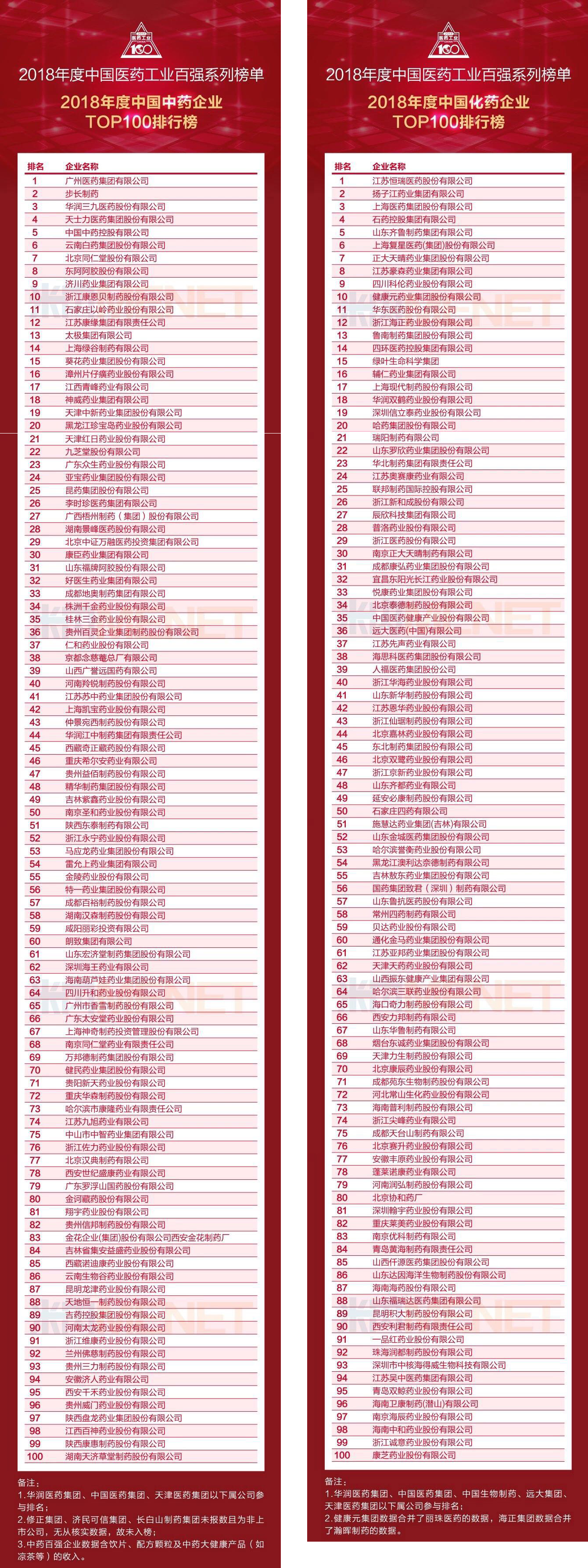 1.“2018年度中國(guó)醫(yī)藥工業(yè)百強(qiáng)系列榜單”評(píng)選時(shí)間跨度為2018年1月1日-12月31日;