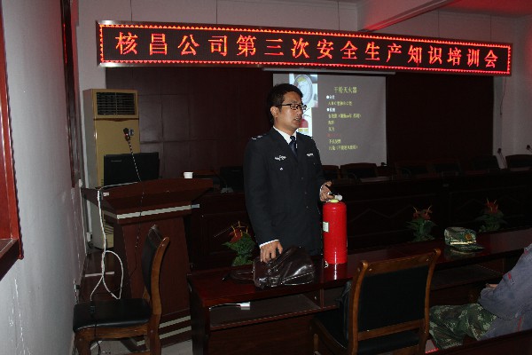 為進(jìn)一步提高全體員工的消防安全知識及滅火技能,貫徹“預(yù)防為主、防消結(jié)合”的消防工作方針,10月12日上午,核昌公司特邀陜西和諧消防張教官為全體員工在公司大會議室舉辦了一場安全生產(chǎn)、消防知識培訓(xùn)。